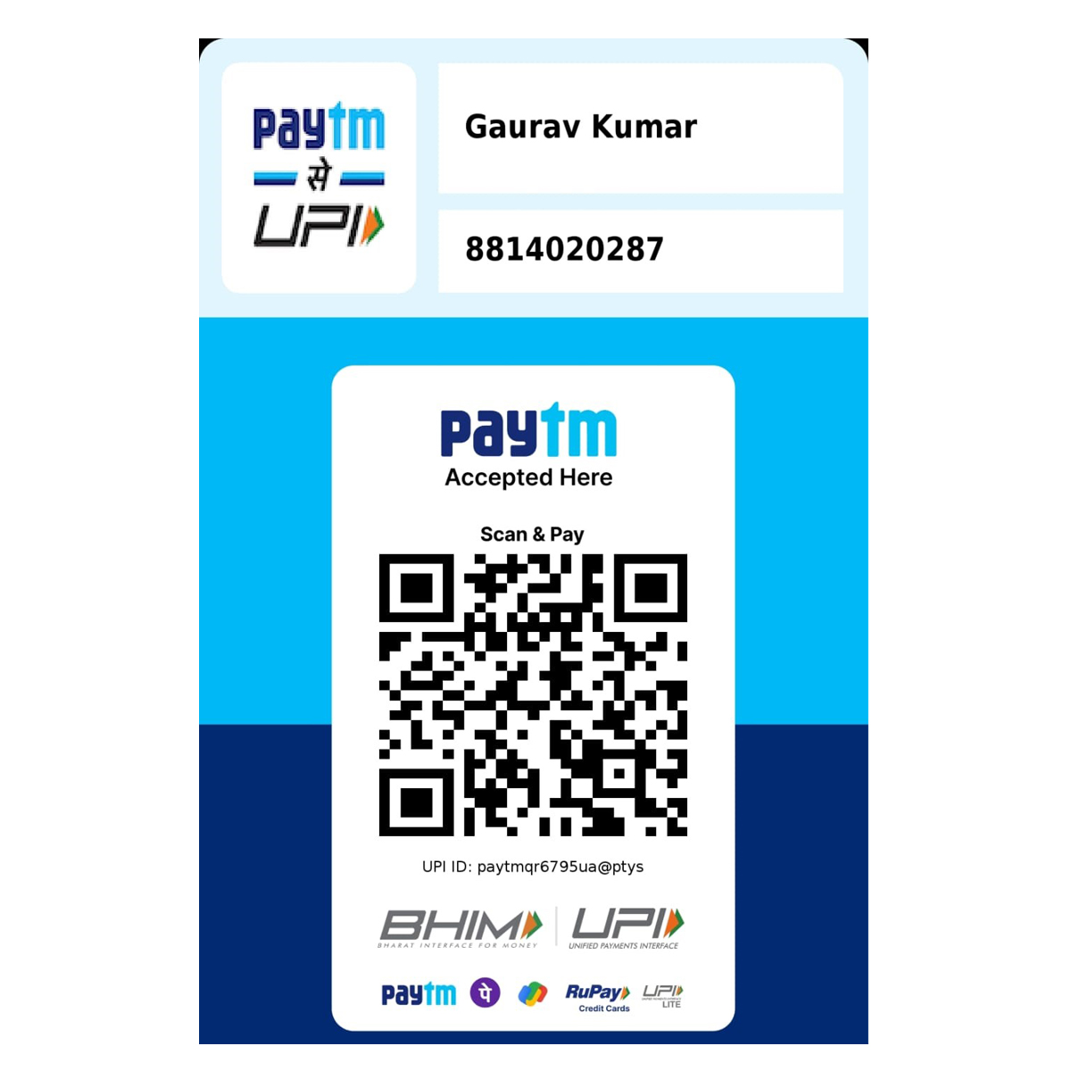 2. Make Payment: Pay for your order using UPI using QR code or at 8814020287 (Under the name Gaurav Kumar)